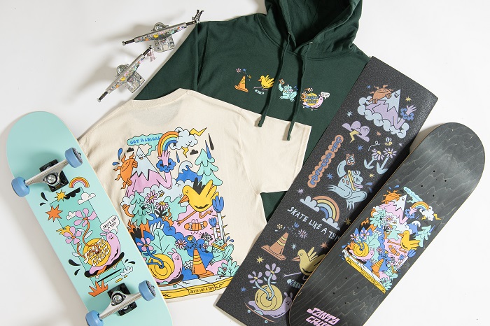 Get Radical with the first ever Skate Like a Girl X Santa Cruz collection with artwork by Hannah Eddy @hannaheddyart. Skate Like a Girl is a 501(3)C non profit with a mission to make skateboarding more inclusive for all. The artwork in this collection designed by Hannah brings an array of skate snails, filmer frogs and cheerful trees all in her whimsical signature style.